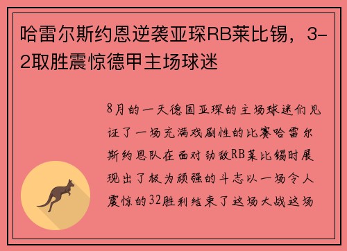 在本次文章中,我们将深入回顾并分析第戎与兰斯之间激烈的比赛,聚焦于比分揭晓时刻的精彩瞬间。通过对比赛过程中的关键事件、球员表现、战术布局以及裁判判罚等方面进行详细探讨,力求呈现出这场赛事的全貌与魅力。首先,我们将从两队的历史背景和近期状态入手,分析双方在比赛中的表现及其影响因素;接着,将重点解读比赛中的几个重要进球和转折点;然后,我们会关注球员个人表现及其对球队整体战斗力的影响;最后,通过裁判执法...